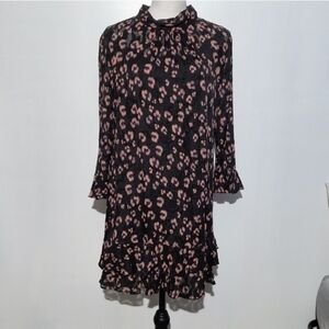 Rebecca Taylor Flounced Cheetah Print Silk Blend Fabric Dress Size 12