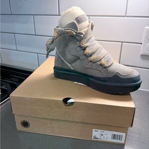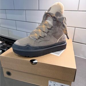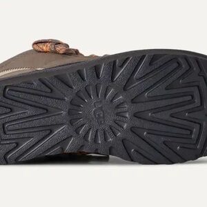 Stylish UGG boots with a cozy tan and orange design. Perfect for winter comfort and warmth.