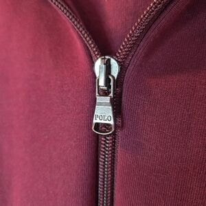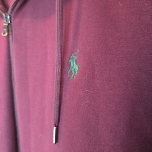Burgundy hoodie jacket by Ralph Lauren. Features a classic design with a comfortable fit. New without tags. Never been worn.