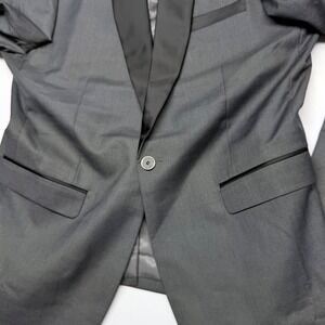 Men's Grey Shawl Collar Tuxedo Blazer Suit Jacket Size L
