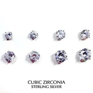 Four sets of sterling silver earrings by Giani Bernini showcasing brilliant round cut CZ gems