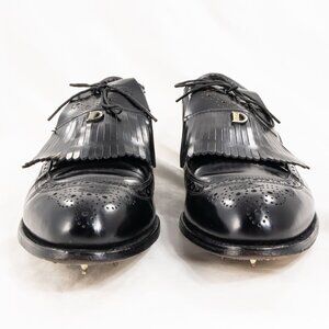 Classic Dexter Medina cap-toe derby golf shoes with kiltie fringe and metal spikes in size 11.5D.