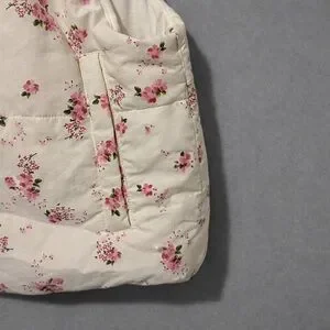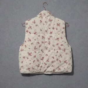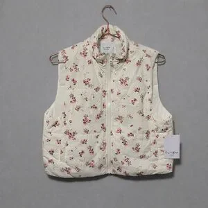 Love Fire vest, floral puffer vest, quilted vest, cottagecore vest, feminine vest, cream floral vest, lightweight puffer, layering vest, zip vest, fall layering, winter layering, NWT vest, romantic style, garden party