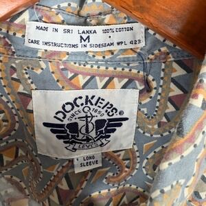 Keywords: Dockers shirt, paisley shirt, button down, long sleeve, cotton shirt, mens fashion, casual wear, retro print, vintage style, weekend attire, unique pattern, smart casual