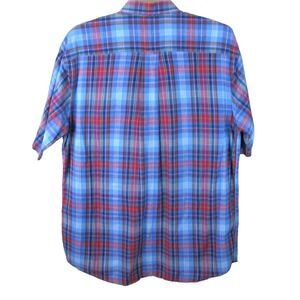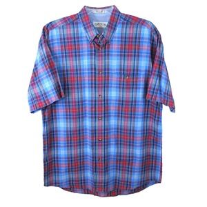 Orvis Short Sleeve Button Down Cotton Shirt Men's Large Red Blue Plaid