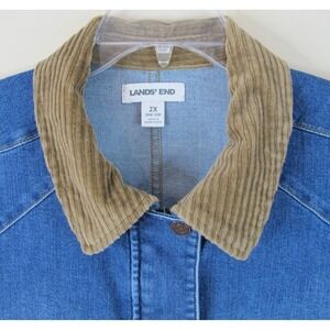 Lands End Blue Denim Long Sleeve Chore Barn Coat Women's Size 1X Unlined