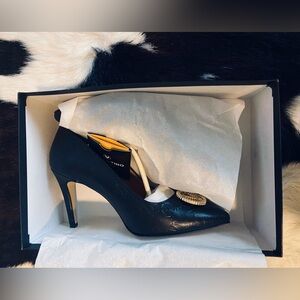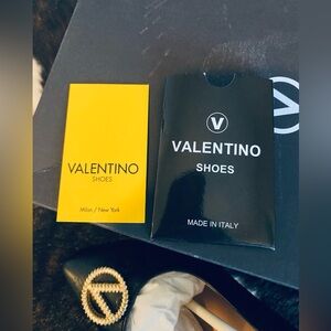 Brand NEW beautiful black Valentino heels. Size 8 purchased from Saks Fifth Avenue. Flat gold V on front of toe.. it’s absolutely gorgeous in person, V all over the leather of the body of the shoe, smooth leather heel. I ordered online and unfortunately for me they are too small, never returned and just cleaning out my closet to make room for new.