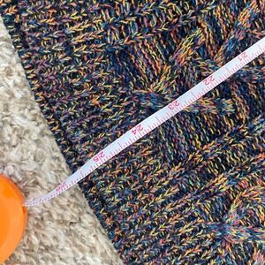 Cozy Y2K-era cable knit sweater in a rich multicolor blend with classic texture and an easy, relaxed fit. Perfect for layering and everyday wear.