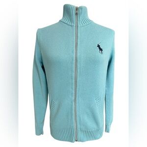 Polo Ralph Lauren Golf W’s Full Zip Sweater Small Aqua sky blue Jacket cotton
