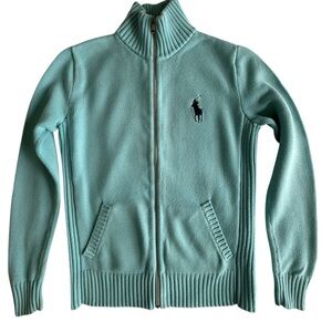 Polo Ralph Lauren Golf Women’s Full Zip Sweater Small Aqua Sky Blue Cotton with signature Logo