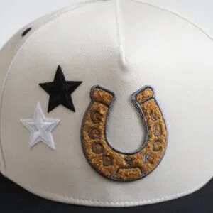 Hawley Black Cream Canvas Customized Good Luck Horseshoe Stars Snapback Hat Cap