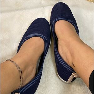 Well worn shoes. These are my gardening shoes. I wore them with no socks.