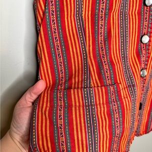 Lizwear Vintage Women’s 100% Cotton Colorful Striped 90s Vest Pearl Buttons - M