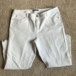 Simply Vera Vera wang lace hem mid rise denim white capris zip up size 16