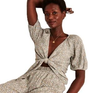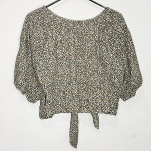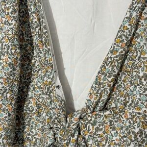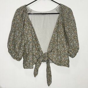 Abercrombie & Fitch Peach Floral Print Tie-Front Linen Blend Blouse Top size L