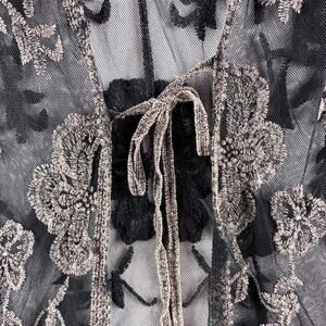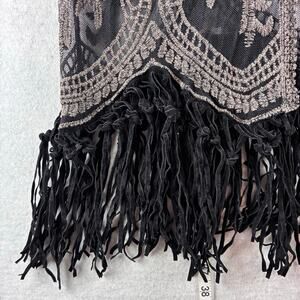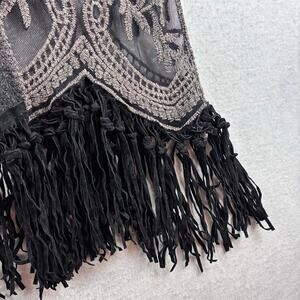 Origami Vivien Kimono Womens OS Embroidered Lace Sheer Boho Gypsy Leather Fringe