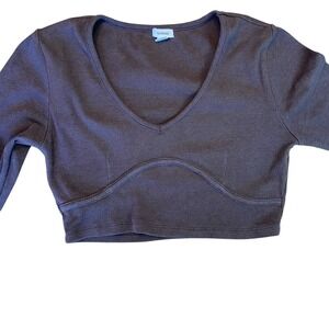 Garage Shirt Womens Small Ribbed Long Sleeve V Neck Crop Top Brown