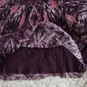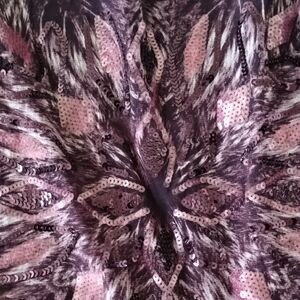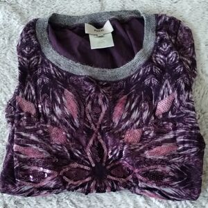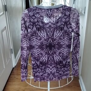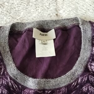 Elegant Fuzzi long sleeve top with a vibrant pattern. Features a mix of purple and pink hues. Perfect for adding flair to your outfit.