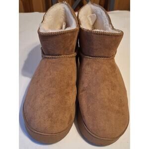 Life Stride Women's Faux Fur Lined Faux Suede Chestnut Tan Bootie Sleeper L 9 10