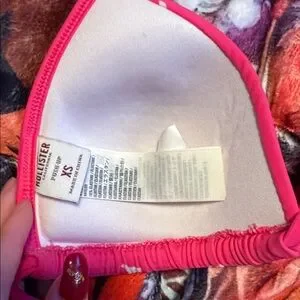 Bright pink bikini with iconic Hollister logo. Adjustable ties for a custom fit. Perfect for beach days. vintage, both come. Medium bottoms and XS push up top