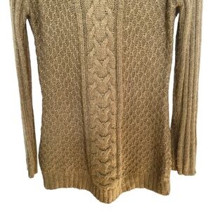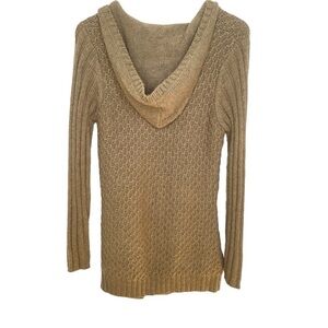 Vertico Taupe/Brown Hooded Cable Knit Sweater VNeck Ribbed Cuffs/Hem Size L