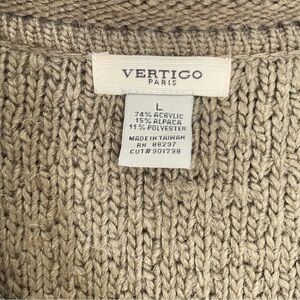 Beautiful, soft and comfortable brown hooded Vertico Paris sweater. Cable knit and long lined. V-neck and ribbed hem and cuffs. Sweater color is deeper brown than depicted in photos. Excellent pre-owned condition. Size L.