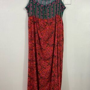 Natural Life Maxi Dress SZ Large Floral Side Slits Sleeveless Red Teal Boho NEW