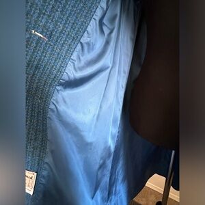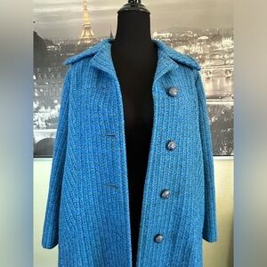 Vintage Harris tweed handwoven 100% pure Scottish wool will fit a woman’s size Extra Large PTP 23” beautiful colors, blue green and gray button down. It has two front pocket.