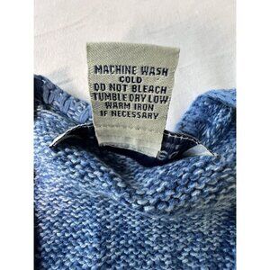 The VTG Appleseeds Cardigan is a cozy and classic marled V-neck sweater in a medium size and blue color. Made of cotton with a tight-knit fabric, this sweater features long sleeves and button accents. It is suitable for various occasions like travel, casual outings, and business meetings. The vintage piece from Appleseed's brand has a retro 90s theme and is lightweight, making it perfect for all seasons, including winter, fall, and spring. Ideal for women looking for a stylish and comfortable addition to their wardrobe.