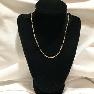This listing is for a 18K Gold Plated Diamond Shaped Mirror Chain. It is approximately 15.5” in length with a 2”extender. The exact length of the chain with the extender is just under 18”. It’s marked 18K gold plated on its hangtag. It’s in like new condition.
