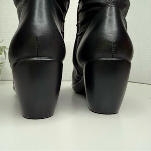 The Modesto is a mid-calf boot with a fashionable scrunched shaft. This style has a heel cup for stability and an inside zipper for accessibility.