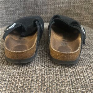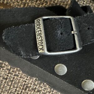 Birkenstock Boston Rivet size 37 (6 - 6 1/2). Some wear to the rivets as pictured. Black suede. Narrow width per Birkenstock sizing. These clogs are a staple piece to any wardrobe!