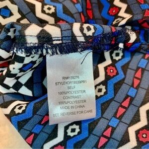 DR2 Tunic Top Large Red Navy Blue White Gray Keyhole Drawstring Tassels Floral