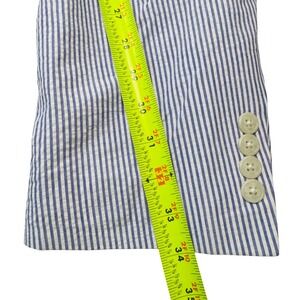 Keywords: seersucker, blazer, sport coat, summer, preppy, casual, tailored, button front, striped, lightweight, cotton, classic