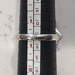 Sterling Silver Emerald-cut Amethyst & White Gemstone Ring