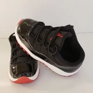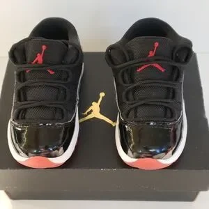 Stylish Jordan 11 retro low Black with striking red details for toddlers. Ideal for everyday wear. In excellent condition, comes with a box.