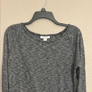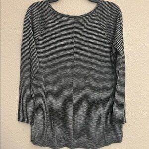 Stylish black and gray striped top for women. Perfect for casual outings or a relaxed day at home.