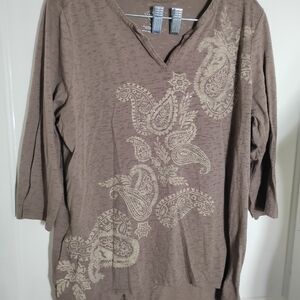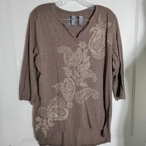 St. John's Bay Brown Paisley 3/4 Length Sleeve Top