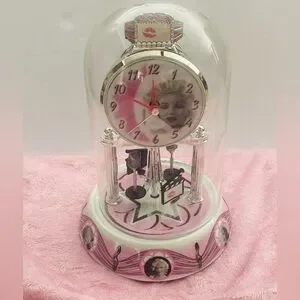 Vintage 2009 Marilyn Monroe Anniversary Porcelain Clock Rotating Pendulum/Dome