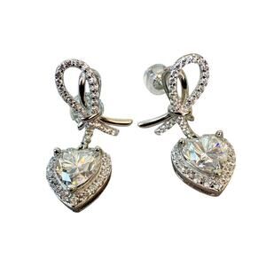2ct Moissanite Heart/Ribbon/Cherry, 925 Silver Earrings