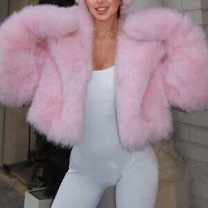 Pink Cute Women's Coat Jacket Faux Fox Fur Hooded Fleece Jacket