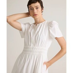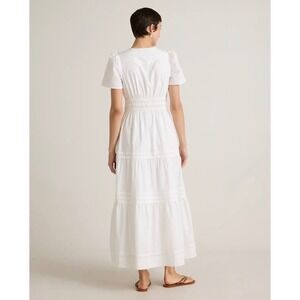 NWT Quince Organic Cotton Poplin Tiered Maxi Dress White Short Sleeve Smocked M