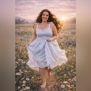 JessaKae Blue Gingham & Lace Priscilla Organza Midi Dress, 1x, NWT!