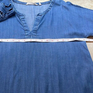 Soft Surroundings Women’s Blouse Cold Shoulder Split Neck Blue Size S