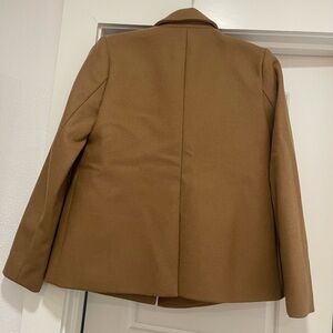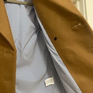 J. Crew Wool Melton Short Peacoat double breasted; tan with blue stripe lining