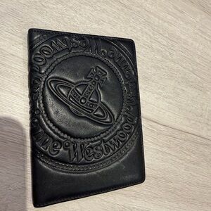 Vivienne Westwood Black Embossed Leather passport Holder authentic