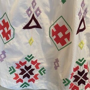 Elegant New with tag Anthropologie Dolly with geometric vibrant embroidery Midi Dress. Size Medium. Sleeveless design. Cotton. Pullover styling. Two side slant pockets. Ruffled hem. Midi silhouette. Hand wash. Imported. Perfect for casual outings.