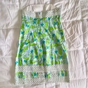 Lilly Pulitzer Strapless Alligator Print Dress Lace Coquette Sundress