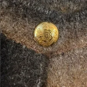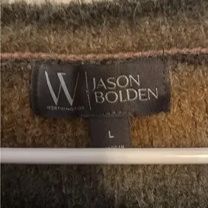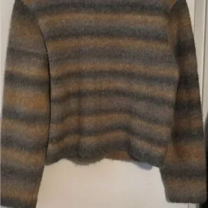 Warm knit sweater with a blend of brown and black. Ideal for cool weather.