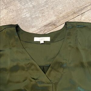 Elegant forest green blouse with V-neck. Perfect for layering or standalone wear.